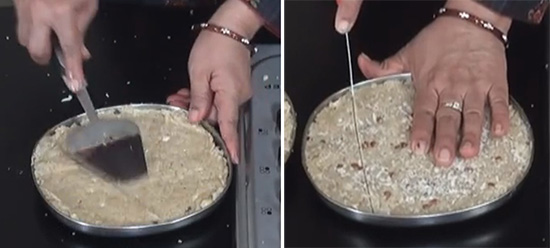 निशा: गरिमा जी, चाशनी बनाते समय पूरा ध्यान रखना है, चाशनी पतली होने पर बर्फी अच्छी तरह जमती नहीं है और चाशनी के ज्याद कड़क होने पर बर्फी सख्त हो जाती है.