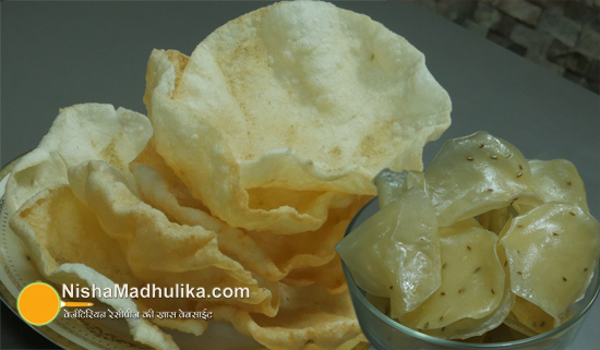 हमने छोटे साइज के पापड़ बनाएं है क्योंकि इन पापड़ को तेल में पूरी तरह डुबाकर तलना होता है.