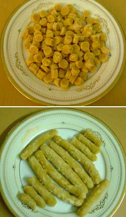 बेसन में सभी मसाले, दही और तेल डाल कर, हाथ से अच्छी तरह मिला लीजिये. पानी की सहायता से रोटी जैसा आटे की तरह नरम आटा गूथ लीजिये. आटे को चार भागों में बांटिये. दोनों हाथों से बेलनाकार, आधा इंच मोटे रोल बना लीजिये.