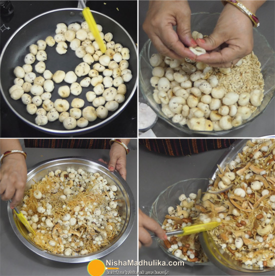 अब कढा़ई में 2-3 चम्मच तेल डाल कर मखाने डाल दीजिए. धीमी मध्यम आंच पर मखाने को लगातार चलाते हुए हल्का सा कलर चेंज होने तक रोस्ट कर लीजिए. 7 मिनिट में मखाने सिक कर तैयार हैं इन्हें प्याले में निकाल लीजिए.