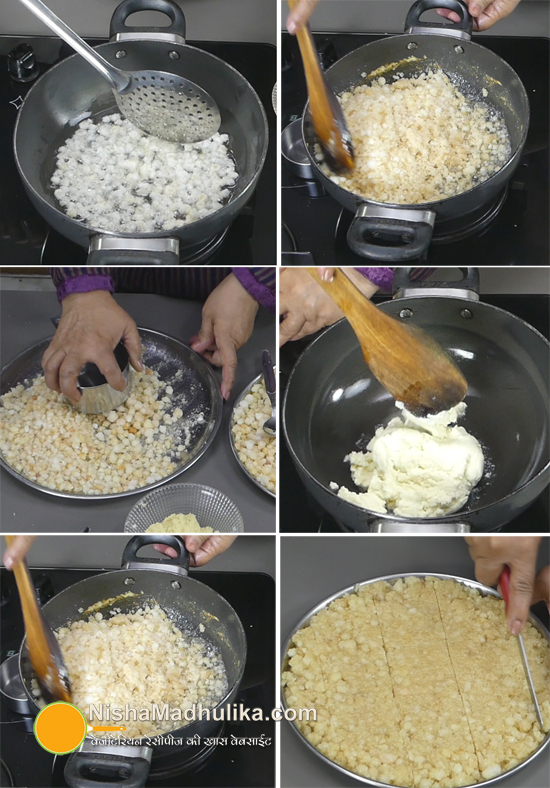 - चाशनी में सभी चीजें डाल देने के बाद अगर मिश्रण सूखा सा लग रहा हो तो उसमें 1-2 छोटी चम्मच पानी के डाल कर मिश्रण को हल्का सा पका कर जमा दीजिए.
