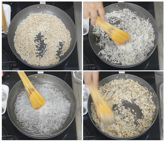 पाग बनाने के लिए एक पैन में 1 कप से थोड़े से कम बीज डाल कर चलाते हुए हल्के ब्राउन होने तक भून लीजिए और एक प्लेट में निकाल लीजिए। इसी तरह पैन में 1.25 कप सूखा ग्रेट किया हुआ नारियल डाल कर 1 मिनट तक चलाते हुए भून लीजिए। नारियल भुन जाने पर एक प्लेट में निकाल लीजिए।