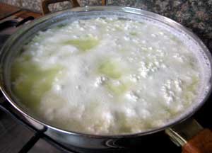 पनीर बनाने के लिये हमेशा फुल क्रीम दूध का ही प्रयोग करें. दूध को किसी भारी तले वाले बर्तन में निकाल कर गरम कीजिये और इसे चलाते रहिये ताकि दूध तले से लग न पाये और इसमें थक्के भी न पडें.