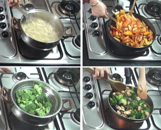 कढ़ाई गरम कीजिये, गरम कढ़ाई में तेल डालिये और गरम तेल में कैप्सकम डालकर 1 से 1 1/2 मिनिट तक भूनिये, उबला पास्ता डालिये, पास्ता सास और अजीनोमोटो डालकर 1-2 मिनिट तक अच्छी तरह सारी चीजों के मिलने तक कलछी से चलाते हुये भूनिये. पास्ता तैयार है, पास्ता को ढककर अभी यहीं रहने देते हैं. मिक्स वेज सब्जी बनाकर तैयार करते हैं.