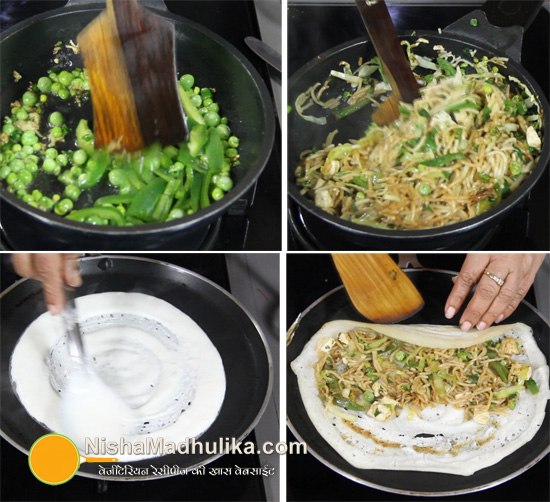 नूडल्स दोसा - Chinese Dosa Recipe - Noodle Stuffed Dosa Recipe