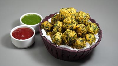 भुट्टे-पालक के कुरकुरे पकौडै़, स्पेशल दही वाली चटनी के साथ Corn Cob Pakora Recipe
