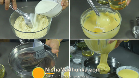 Take a thali and grease it with a little oil.