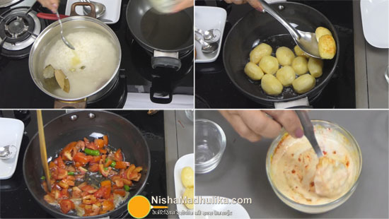 We took smaller sized potatoes but, larger sized potatoes can also be used after chopping into 2-4 pieces.