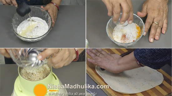 1- You can also mix the chickpea flour in the refined flour while preparing the dough.