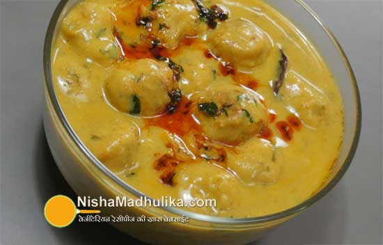 A great recipe. Prepared it today. One word of caution. The kadhi thickens rapidly. Its best to add the pakodas (cutlets) at serving time as boiling them in the kadhi breaks them up, further thickening the kadhi.