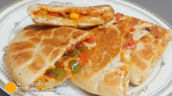 तवे पर बनाईये वेज पिज़्ज़ा कुलचा सैन्डविच । Cheesy Veg Kulcha Sandwich on Tawa
