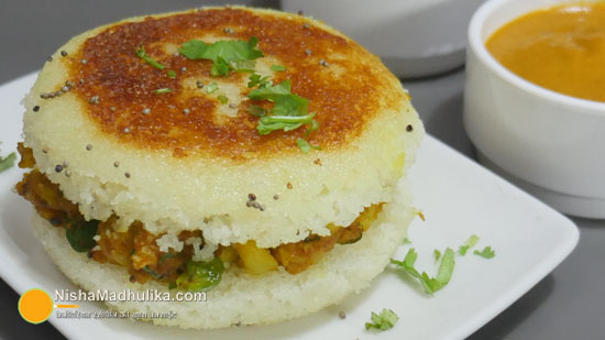 Stuffed Rava Idli Sandwich । इडली सेन्डविच मसाला - चटपटे आलू से भरी टिफिन व नाश्ते के लिये