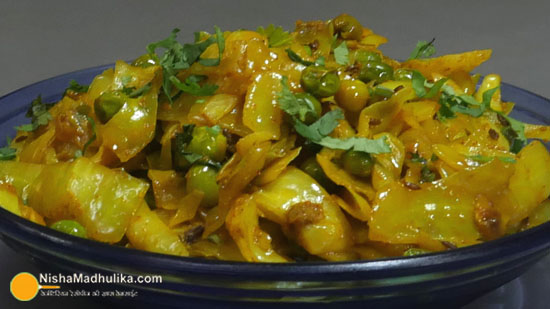 Cook it for 5 minutes on the low to medium flame. Stir it and cook while covering it for 3 minutes on the low flame. The curry peas and cabbage have become crunchy. Add a packet of MAGGI Masala-ae-Magic and mix it well.