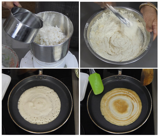 Add a ¾ teaspoon of salt to it and stir well. Preheat a griddle and grease it with oil. Spread a tablespoon of batter evenly in the circular motion over it and let it cook for a while. Spread some oil over and around it.