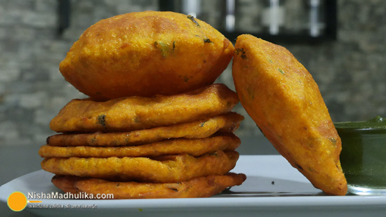 Spicy pumpkin Poori is a Poori which is filled with spices and a veggie. It is not stuffed though, it is mixed. Its texture is soft and smooth.