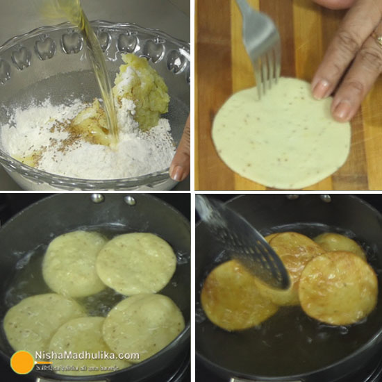 Expand flattened ball from the edges and prick it on both sides using a fork. Preheat oil in a wok for frying it. To fry aloo Papdi, you medium-hot oil and the medium flame is required.