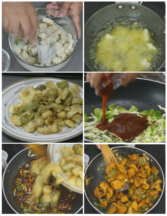 Add the chopped veggies to the batter and mix well until batter coats them well. Preheat oil in a wok and add the veggies to it for frying but, slowly. Fry the veggies while stirring them until they appear golden brown. 5 to 6 minutes will be acquired to fry a round of veggies.