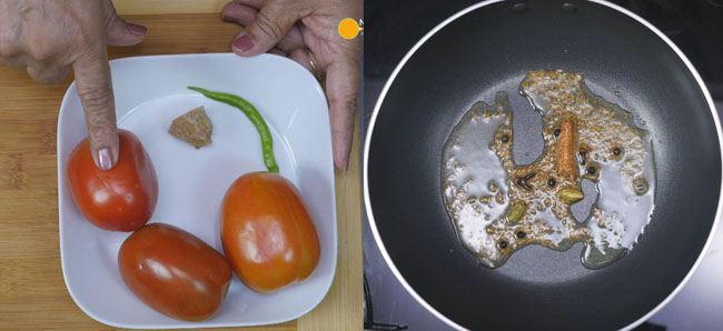 Tips: If you like onion, then chop it similarly as tomatoes. After adding solid spices, add onion and roast until pinkish. Then, add other masala and ready the gravy.