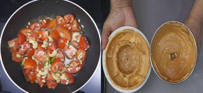 Next, add the chopped tomatoes, green chili, and ginger to the pan. Cashews are a must in paneer Lababdar, so add 10-cashews to the pan.