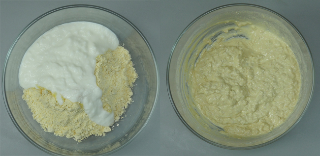 Mix 1/2 cup of oats, 1/2 cup of besan, and 1/2 cup of curd in a bowl. Add 3 tbsp of water gradually to the mixture and prepare a thick batter. Once the mixture is ready, leave it for 10 minutes to set.