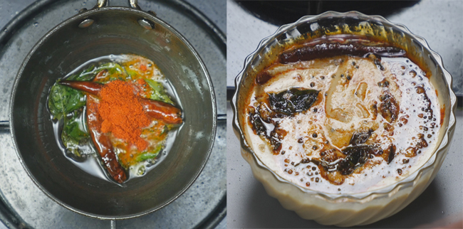 Turn off the flame and add 1/4 tsp of red chili powder to the oil. Add Tadka to the chutney and mix well.