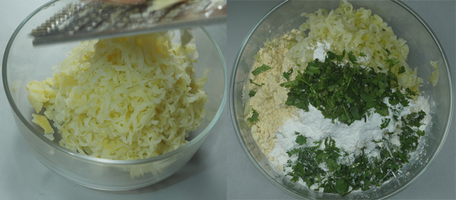 Grate 6-boiled potatoes after peeling and add spices. Add 1 tsp of salt, 1/2 tsp of crushed black pepper, 6 tbsp of sattu flour, 1-2 tbsp of finely chopped coriander, and mix well.