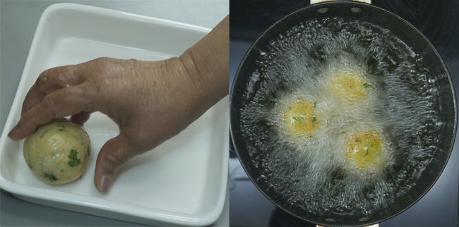 Add a little oil to your hand and make the ball round and smooth. Likewise, prepare all the patties balls. Heat the oil in the Kadai for frying. We need medium hot oil and medium heat to fry patties.