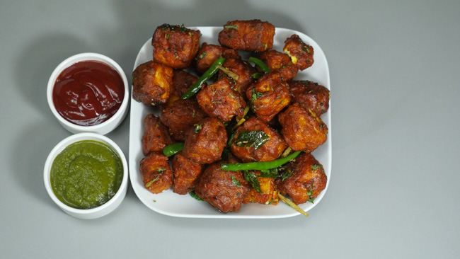 To make the snack time more fun, today we are going to make Paneer 65. These will be ready in a jif...