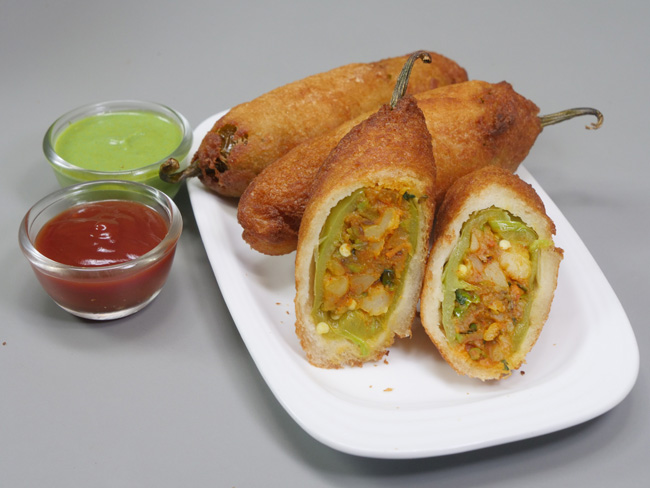 Crunchy and Spicy Stuffed Mirchi Masala Bonda Recipe