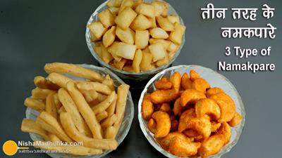 एक ही डो से बने अलग अलग स्वाद के 3 तरह के नमकपारे Crispy and Spicy Quick Recipe of 3 Types of Namak Pare